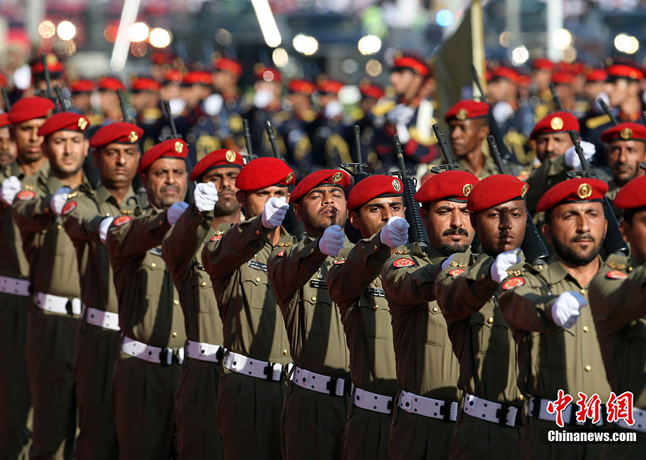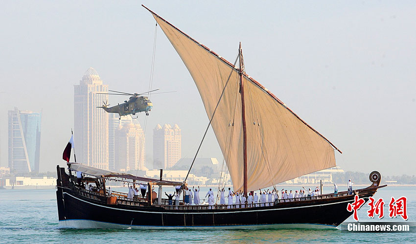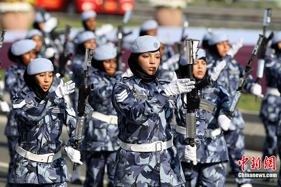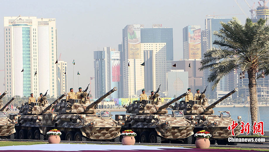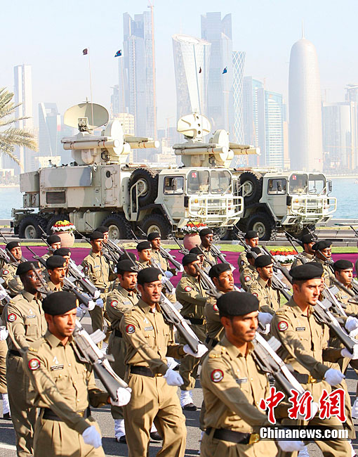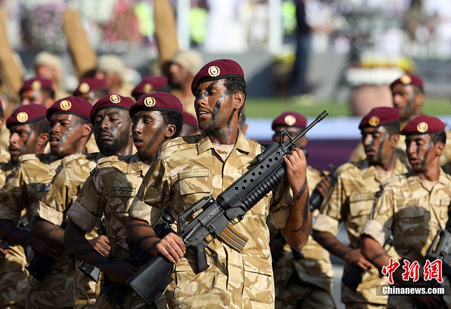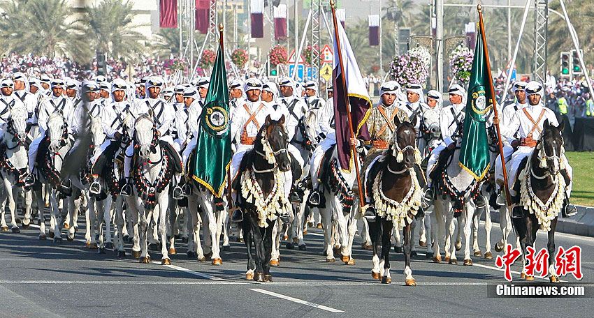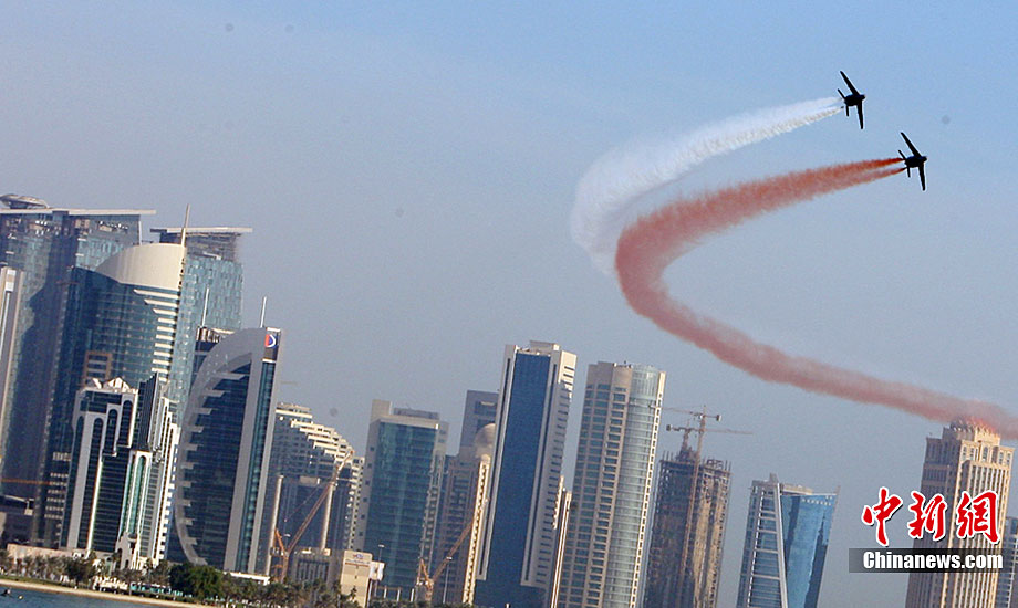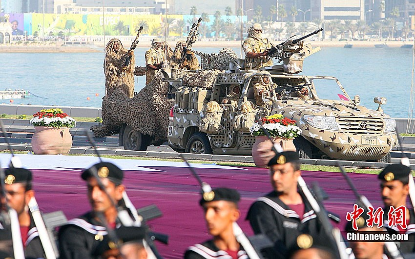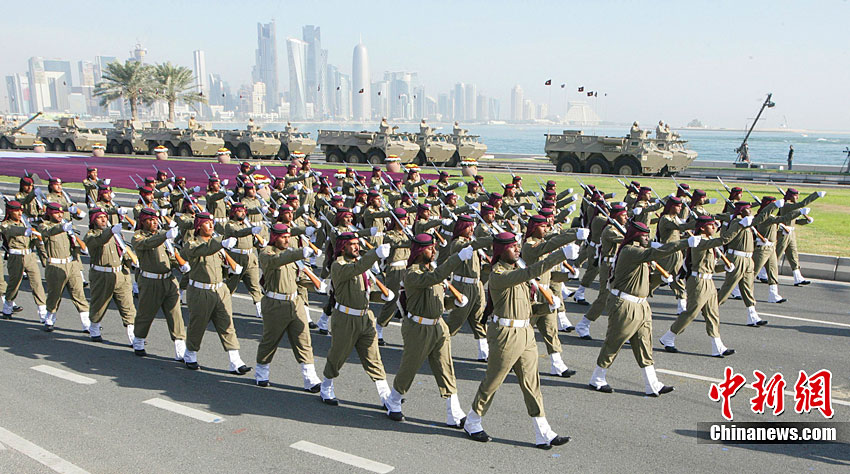 當?shù)貢r間12月18日,卡塔爾首都多哈的海邊大道上舉行了盛大的國慶日閱兵式。