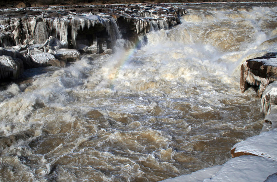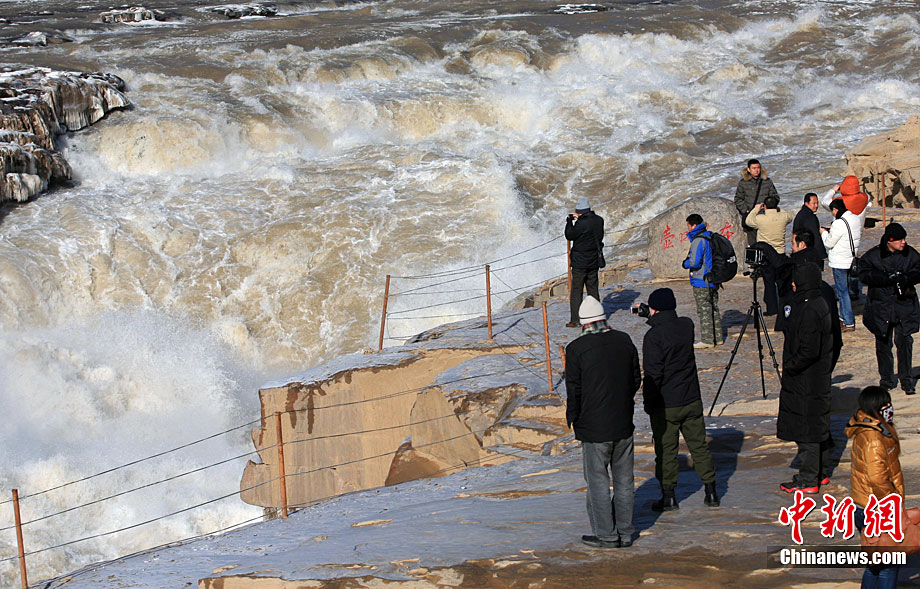 12月17日,黃河壺口冰凍瀑布在陽光照射下異常美麗,引得八方游客前來觀賞美景。據(jù)了解,這是由于近期受冷空氣影響,形成的美麗自然景觀。張旦 攝 圖片來源:CNSPHOTO