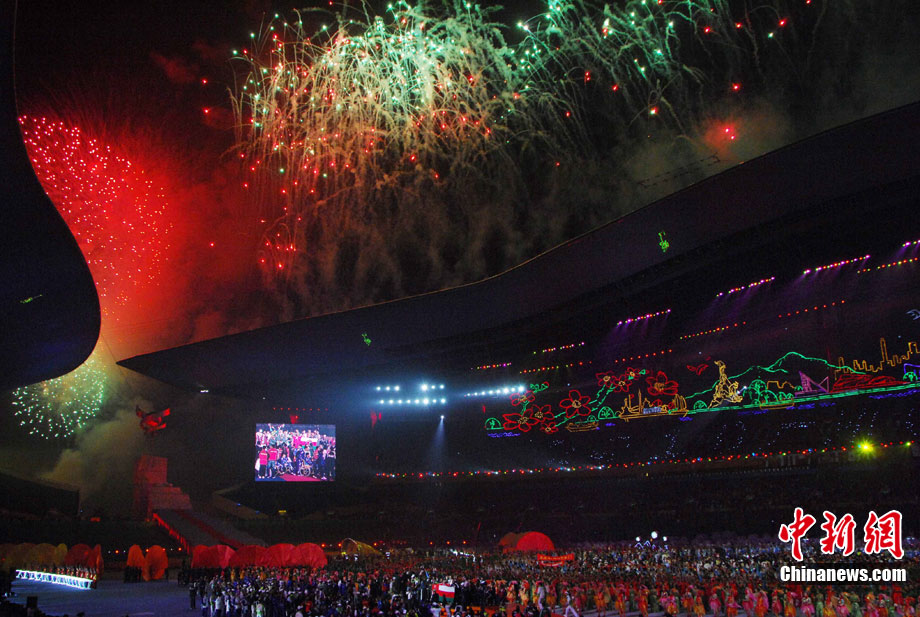 12月19日晚,廣州亞殘運(yùn)會(huì)舉行閉幕式,中國(guó)香港隊(duì)入場(chǎng)。張美安 攝