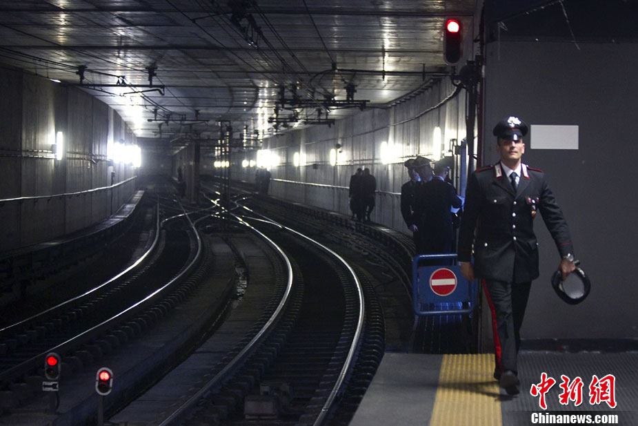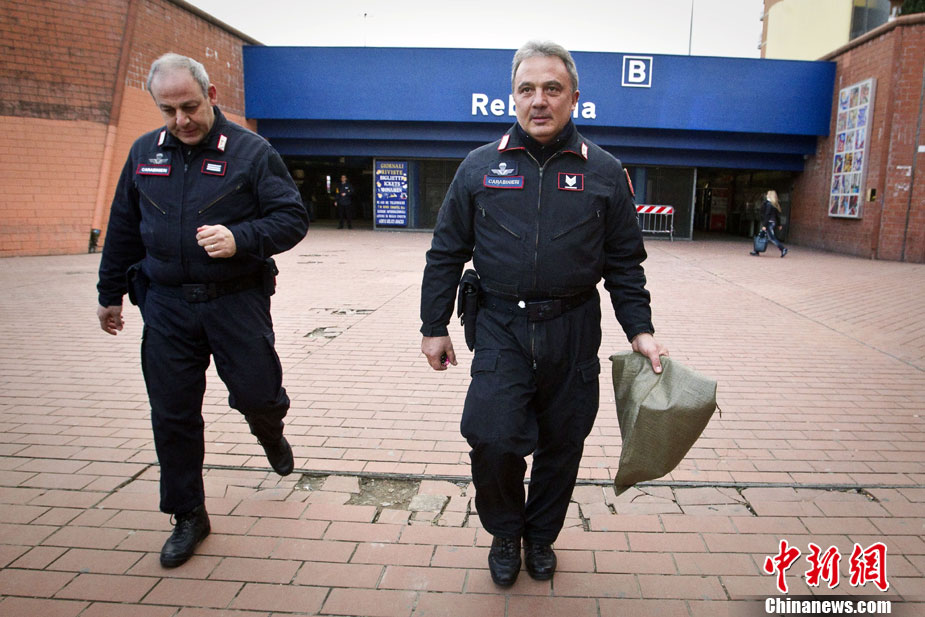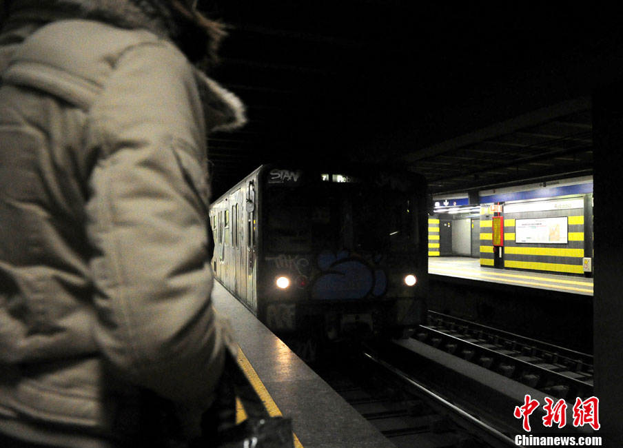12月21日,意大利羅馬,運(yùn)輸員工當(dāng)天在一節(jié)地鐵空車廂里發(fā)現(xiàn)了一個(gè)裝有將要爆炸的炸彈包裹,隨后被安全人員拆除。圖為21日,在意大利羅馬,一輛地鐵即將到站。