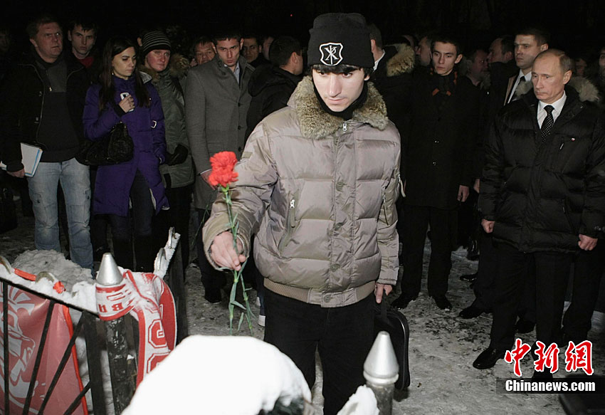 當(dāng)?shù)貢r(shí)間12月21日,俄羅斯總理普京與部分球迷一起,來(lái)到日前被槍殺的莫斯科斯巴達(dá)克足球俱樂部球迷葉戈?duì)?#183;斯維里多夫的墓前,獻(xiàn)上鮮花表達(dá)哀思。12月5日夜間至6日凌晨,一群斯巴達(dá)克隊(duì)的球迷與一撥來(lái)自北高加索地區(qū)的年輕人在莫斯科北部的喀瑯施塔得林蔭道某汽車站附近發(fā)生斗毆,結(jié)果球迷葉戈?duì)?#183;斯維里多夫被槍殺身亡。
