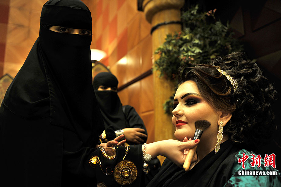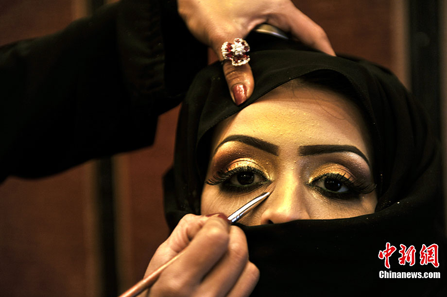 當?shù)貢r間12月21晚,沙特2010化妝用品博覽會在沙特阿拉伯的吉達市舉行,此次博覽會為期四天。圖為沙特婦女在博覽會上進行現(xiàn)場化妝。