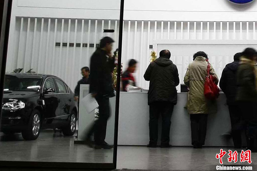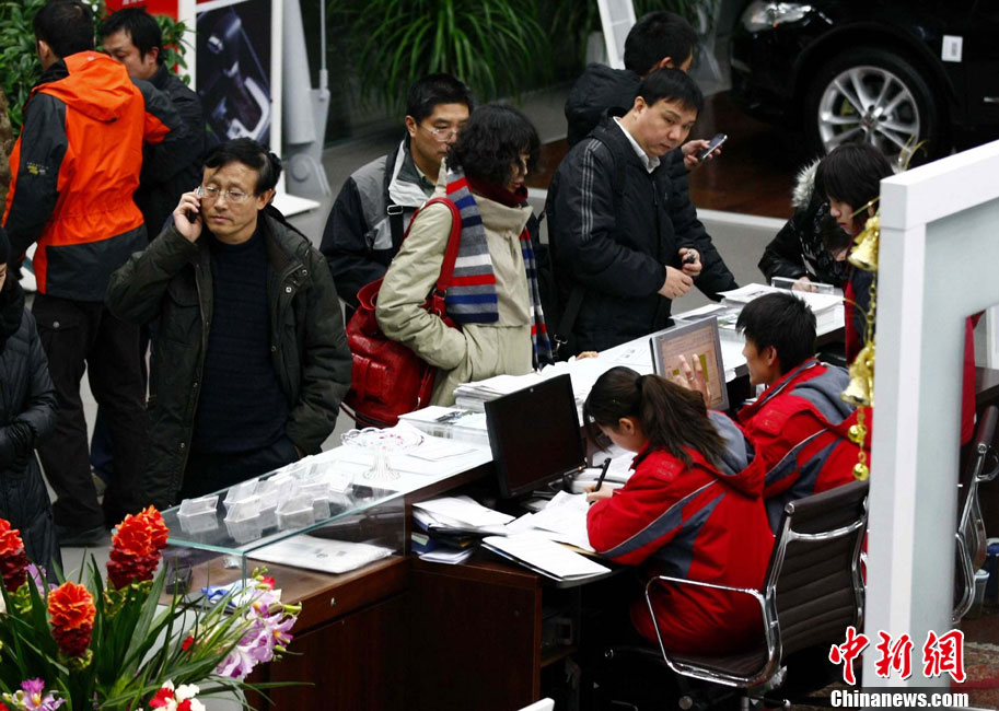 12月23日夜,北京民眾連夜排隊購置新車。當(dāng)日下午,北京市人民政府新聞辦公室召開“北京交通改善措施”新聞發(fā)布會,正式公布了《關(guān)于進(jìn)一步推進(jìn)首都交通科學(xué)發(fā)展 加大力度緩解交通擁堵工作的意見》,將實行綜合措施治理交通擁堵。其中,2011年度北京小客車總量額度指標(biāo)控制為24萬個,牌照通過搖號無償分配的政策成為民眾關(guān)注的焦點(diǎn)。中新社記者 富田 攝