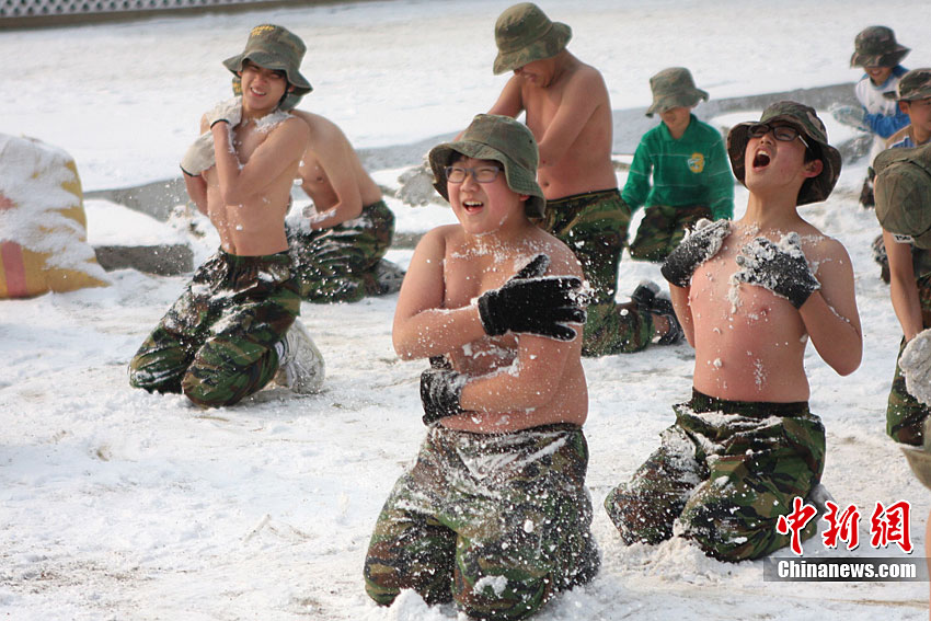 韓國中小學(xué)生赤膊在雪地中軍訓(xùn)