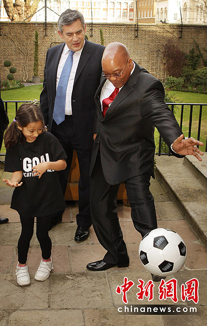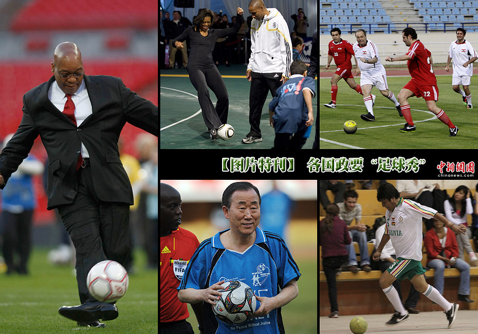作為一項全球運動,足球不單是運動員的最愛,同時也受到多國政要的熱愛。傳統(tǒng)列強英法德西的政府首腦曾先后在不同場合大秀自己的球技,而作為2010年世界杯東道主南非的總統(tǒng)祖瑪也不例外。