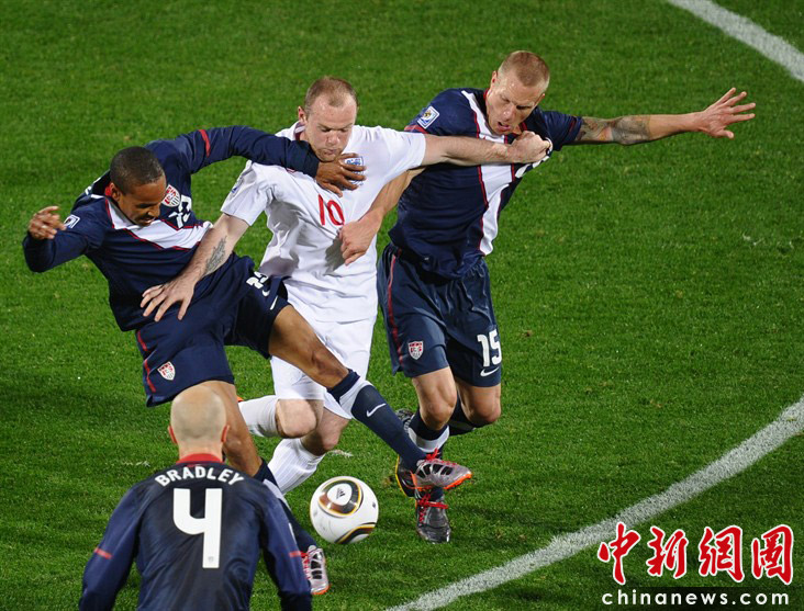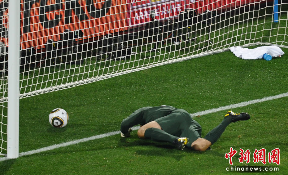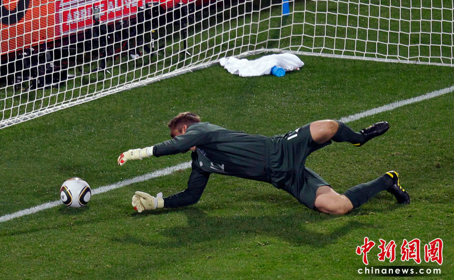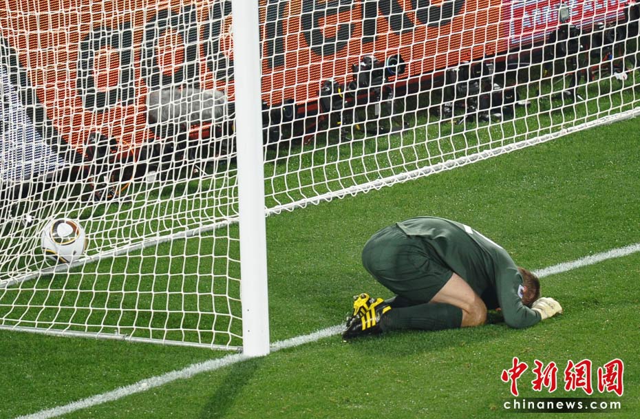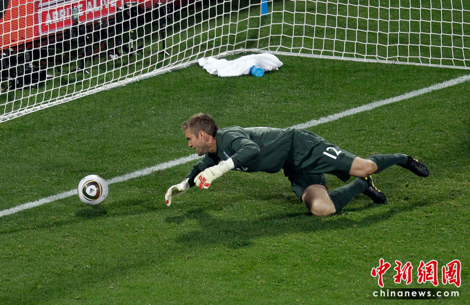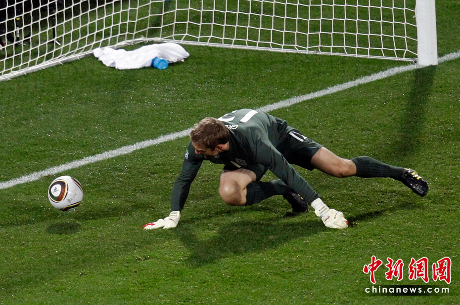 在13日凌晨2:30開(kāi)始的一場(chǎng)南非世界杯小組賽中,英格蘭隊(duì)迎來(lái)了首個(gè)對(duì)手美國(guó)隊(duì),雖然蘭帕德在比賽開(kāi)始后先拔頭籌,但上半場(chǎng)臨近結(jié)束前守門員格林的一次超低級(jí)失誤斷送好局,最終雙方1-1握手言和。 圖為格林失誤的瞬間。