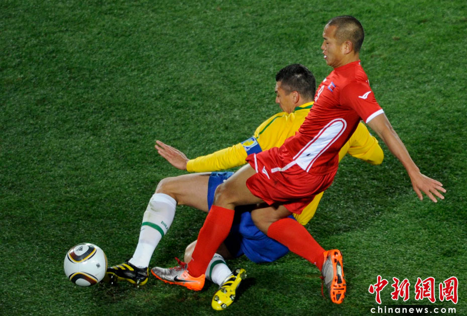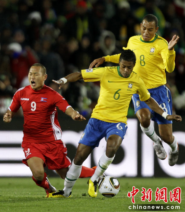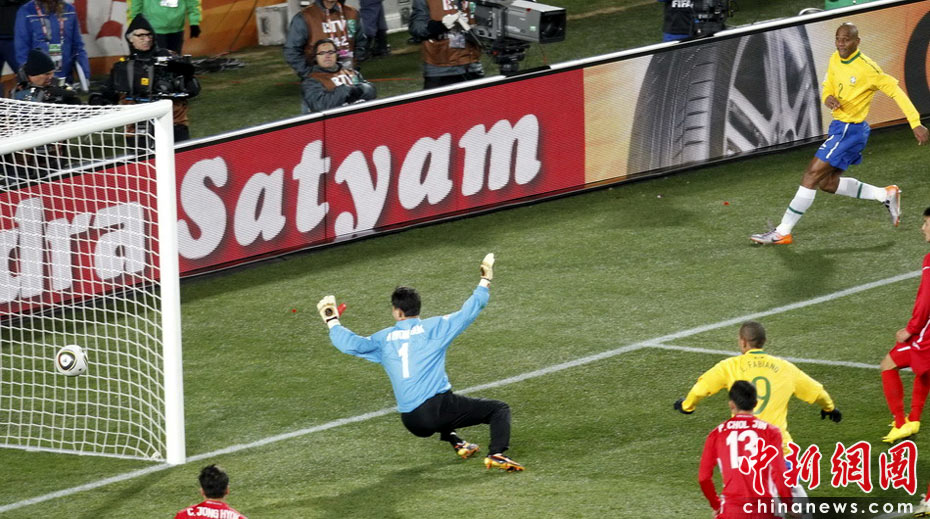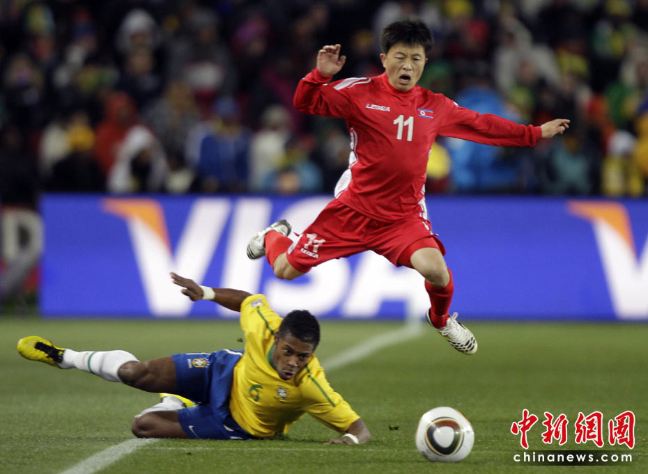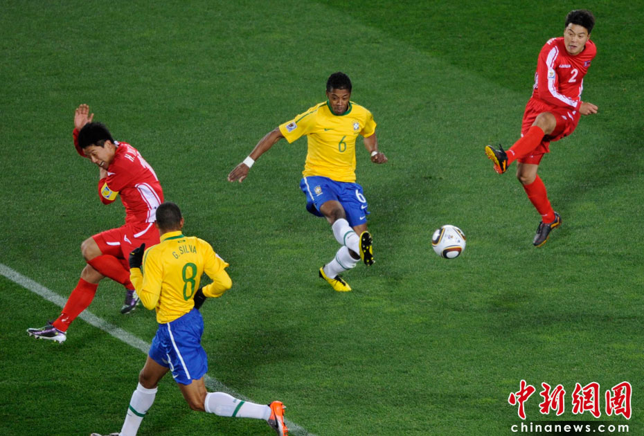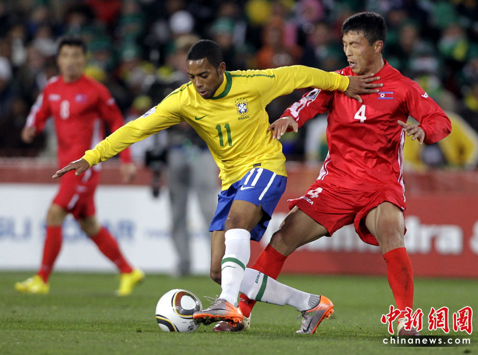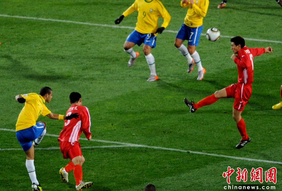 北京時間6月16日凌晨2:30進行的一場世界杯小組賽G組的較量中,巴西隊迎來了朝鮮隊。最終經(jīng)過90分鐘激戰(zhàn),巴西隊2-1擊敗朝鮮,贏得南非世界杯開門紅。