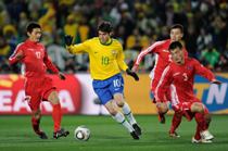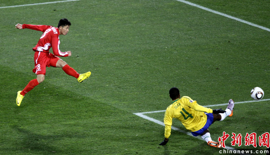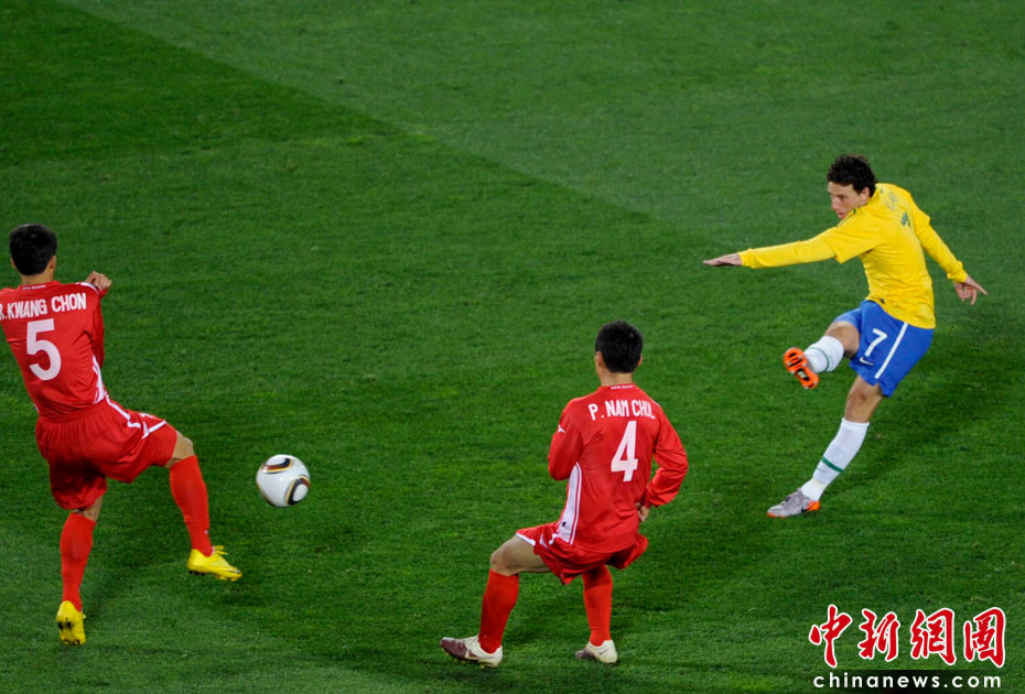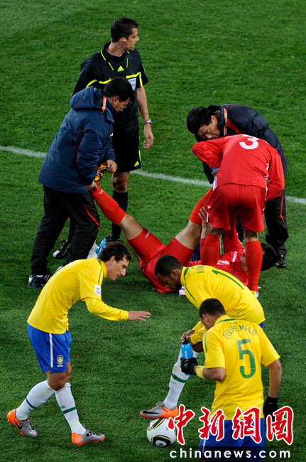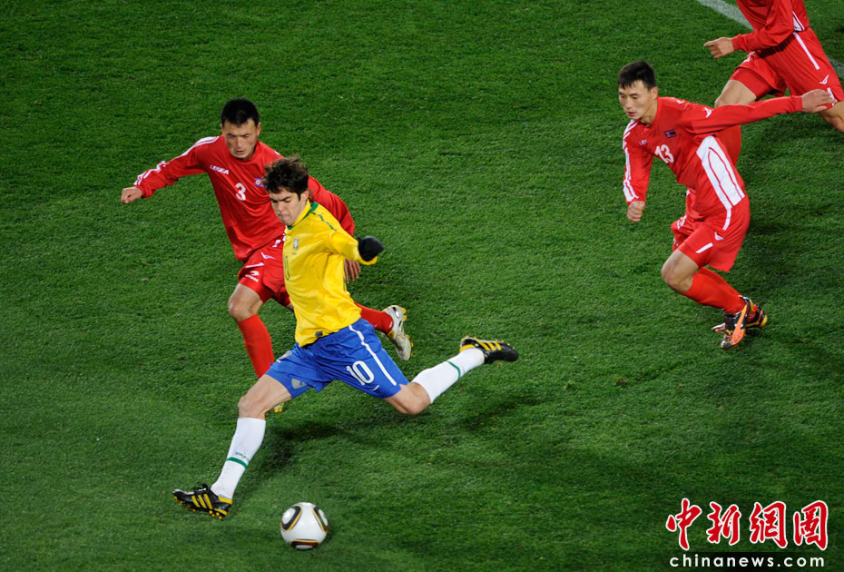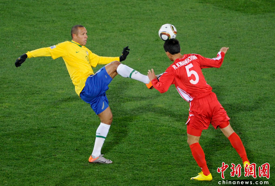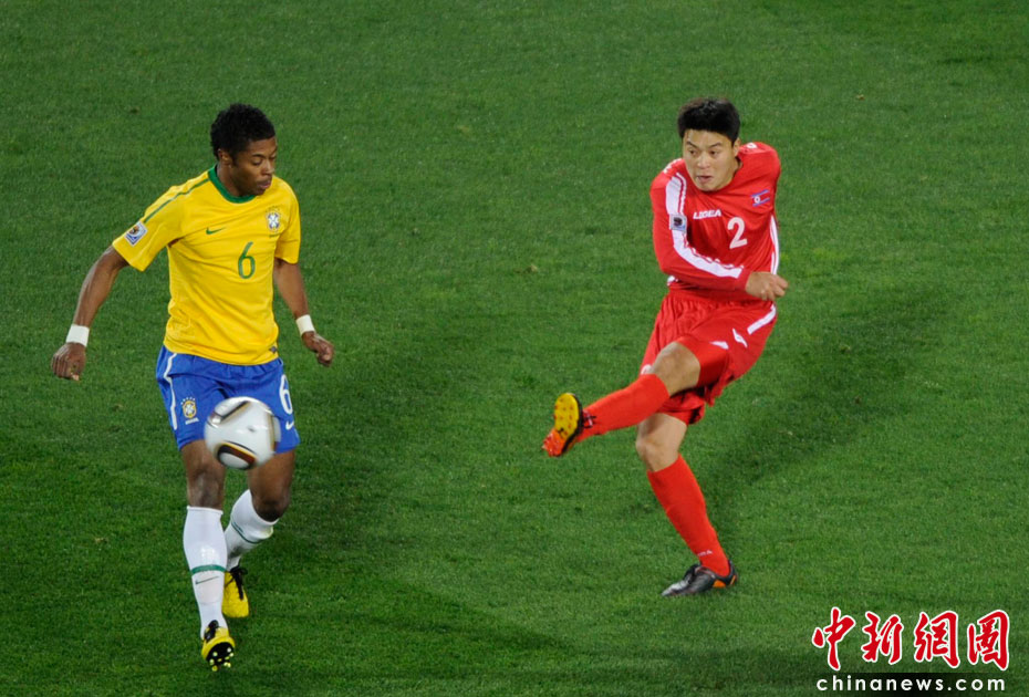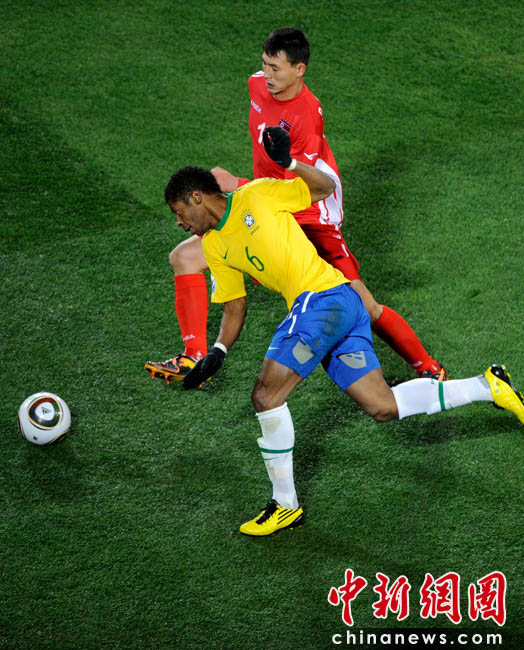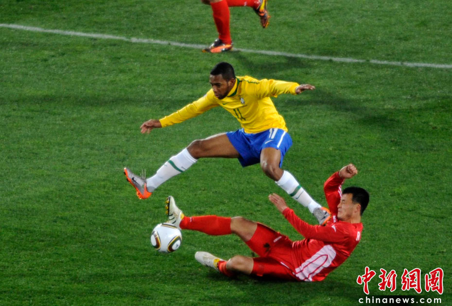 北京時間6月16日凌晨2:30進行的一場世界杯小組賽G組的較量中,巴西隊迎來了朝鮮隊。最終經(jīng)過90分鐘激戰(zhàn),巴西隊2-1擊敗朝鮮,贏得南非世界杯開門紅。