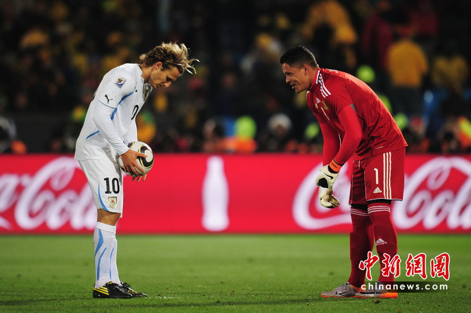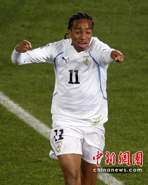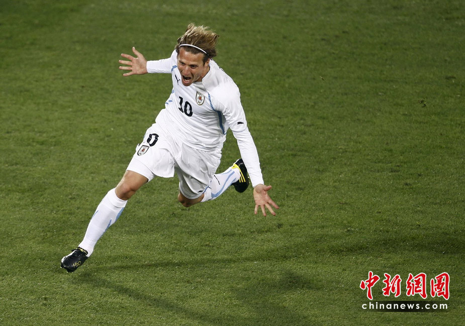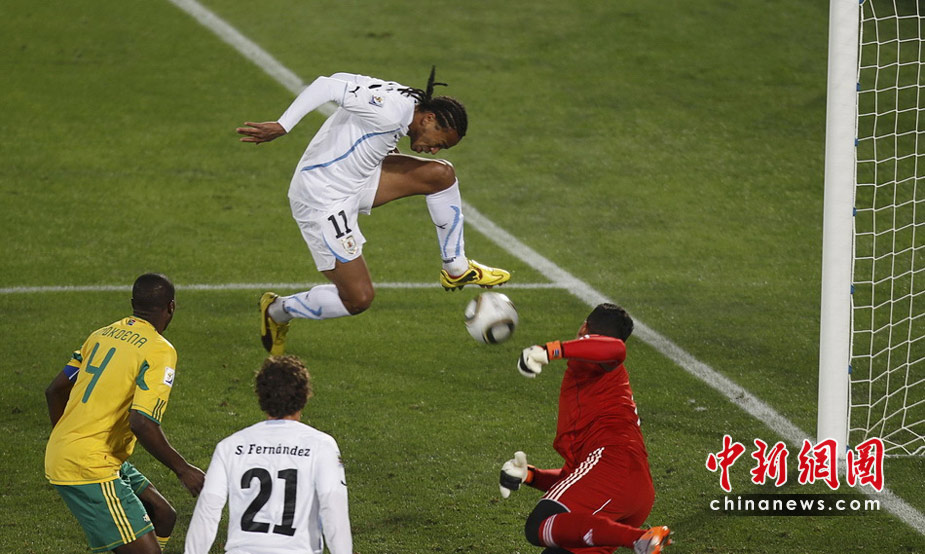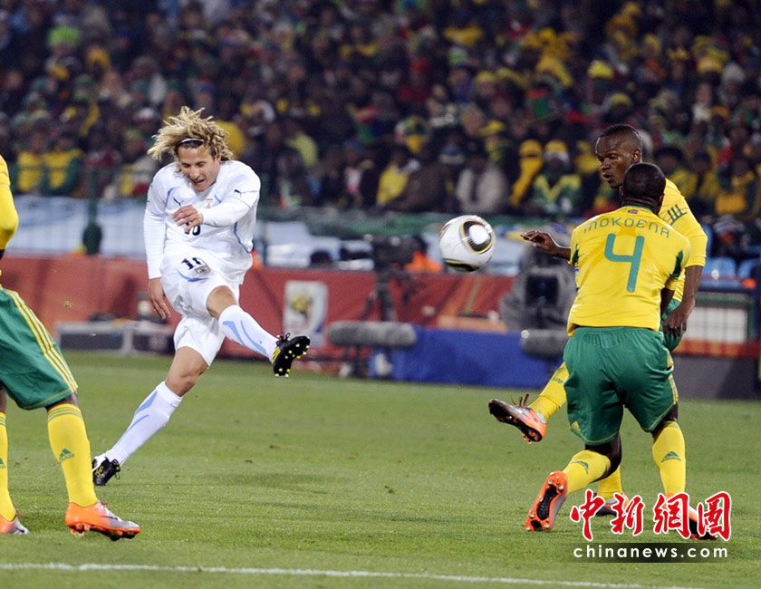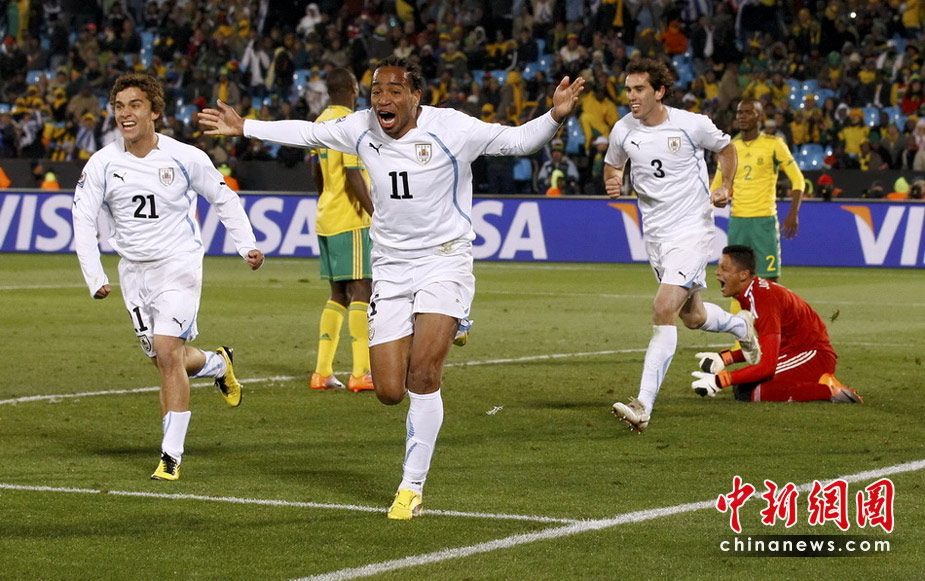 6月17日,世界杯A組第二輪南非迎戰(zhàn)烏拉圭。最終憑借弗蘭的梅開二度和佩雷拉終場補時的進球,烏拉圭隊以3-0擊敗南非,出線形勢一片大好。