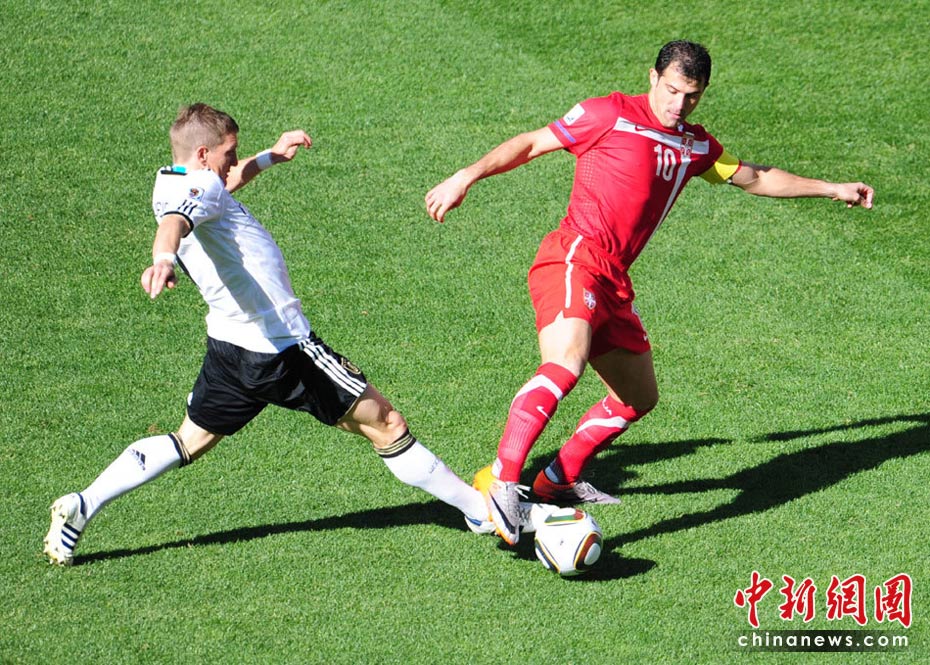 北京時(shí)間6月18日晚19:30分,世界杯小組賽D組德國(guó)迎戰(zhàn)塞爾維亞。德國(guó)前鋒克洛澤累計(jì)兩張黃牌被罰下場(chǎng),比賽38分鐘塞爾維亞隊(duì)約萬(wàn)諾維奇頭球率先破門破門。此后比賽中,德國(guó)隊(duì)獲得一次點(diǎn)球機(jī)會(huì),波多爾斯基主罰,但他罰出的球被塞爾維亞門將斯托伊科維奇撲出。最終塞爾維亞1:0戰(zhàn)勝德國(guó)隊(duì)。