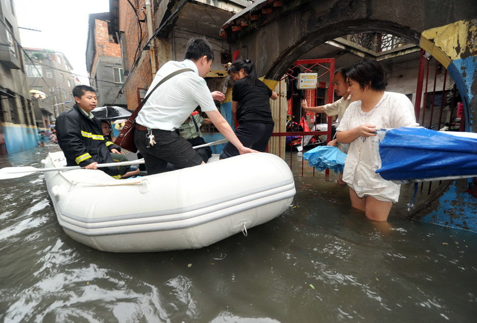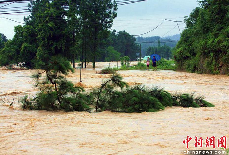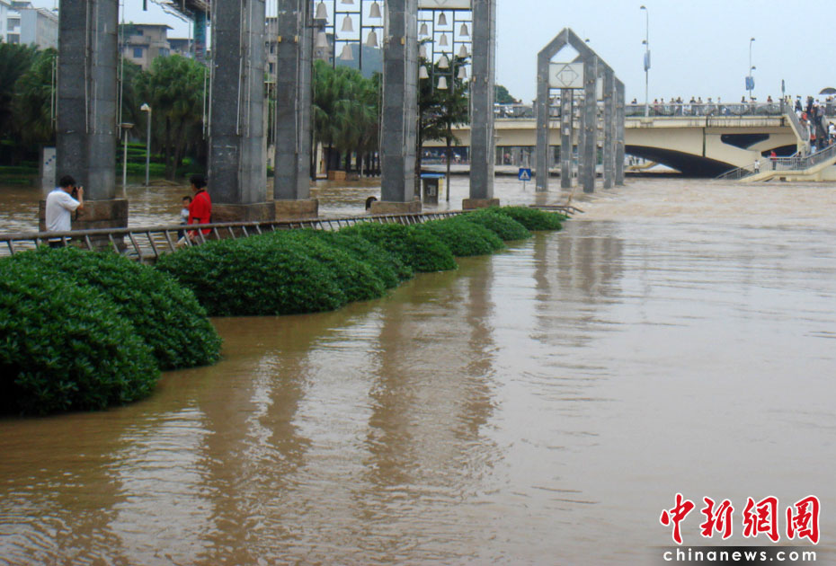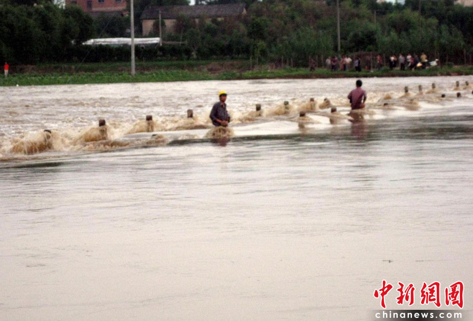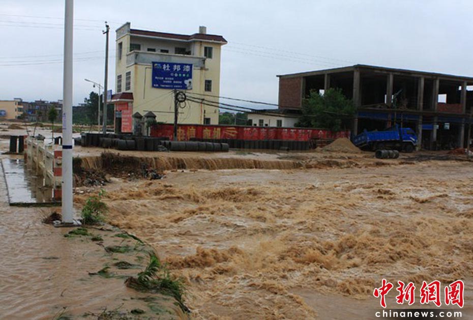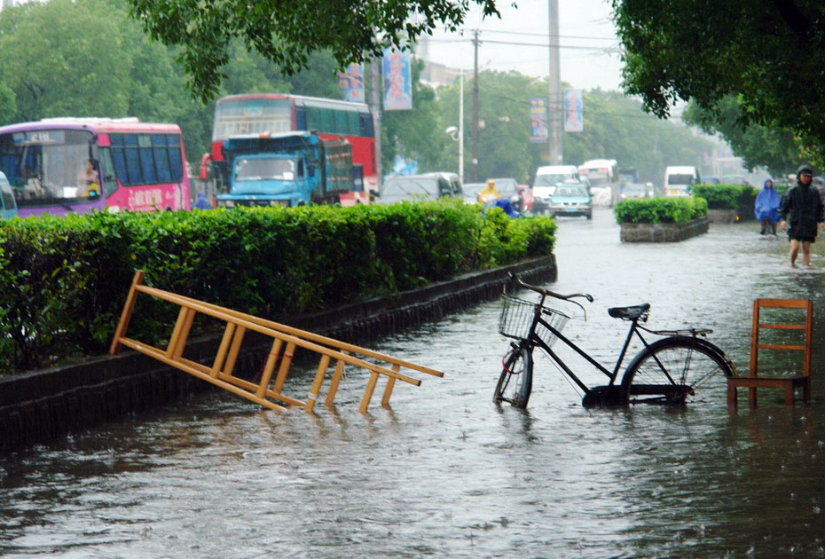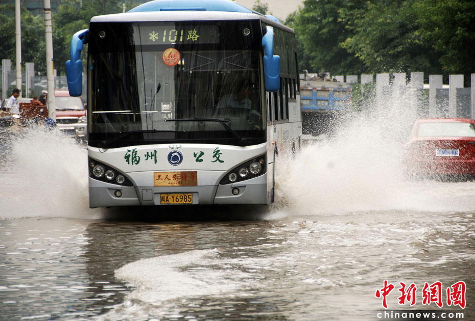 6月19日,福州一市民在市區(qū)被淹的道路艱難騎行。連日暴雨侵襲,福建各地水災(zāi)不斷,已導(dǎo)致165萬人受災(zāi)。中新社發(fā) 王東明 攝