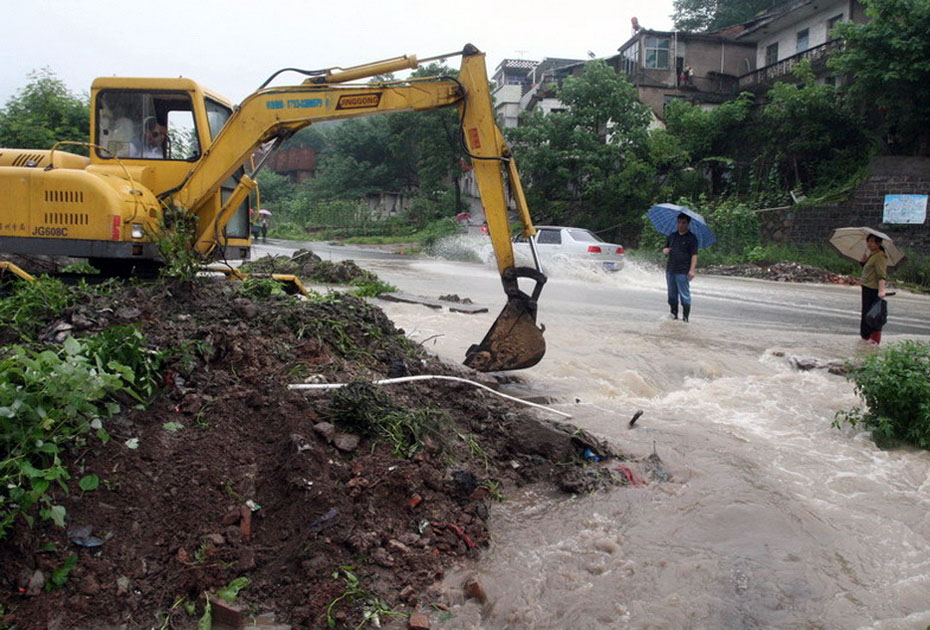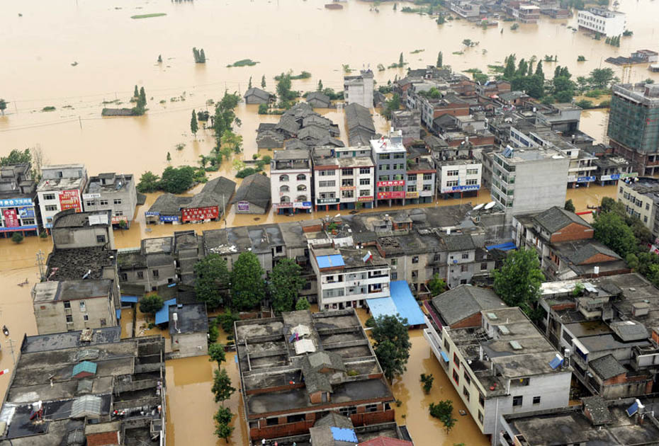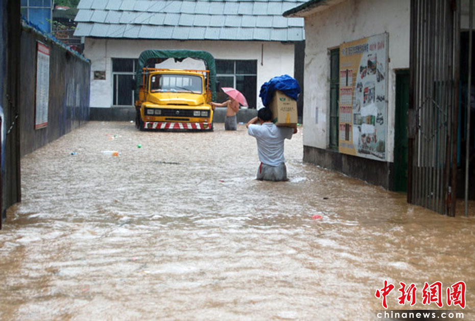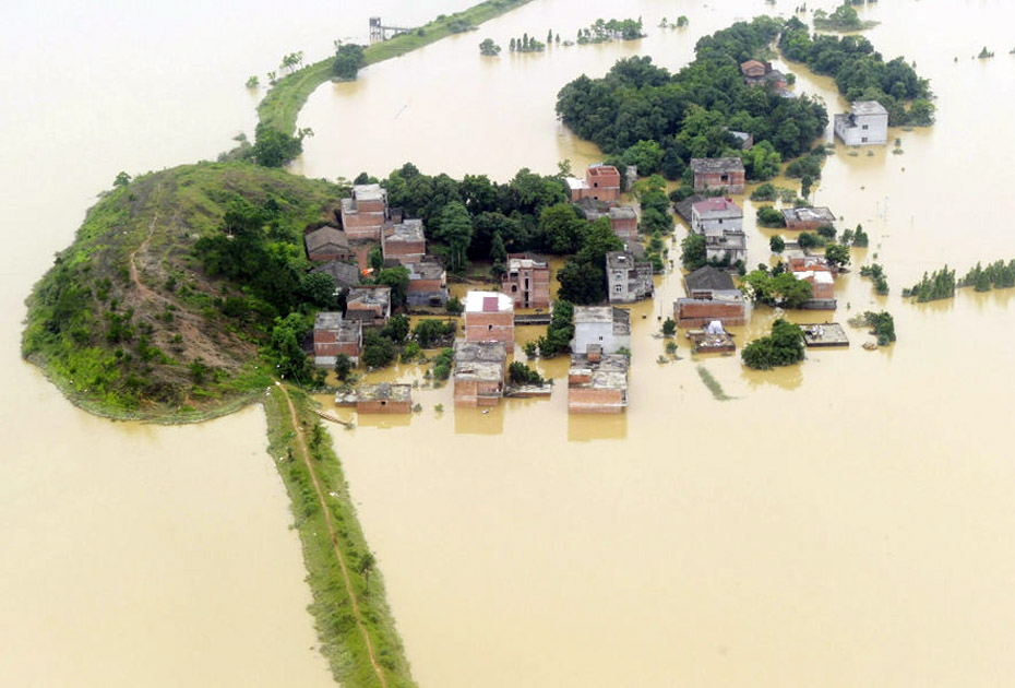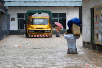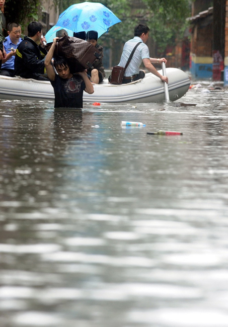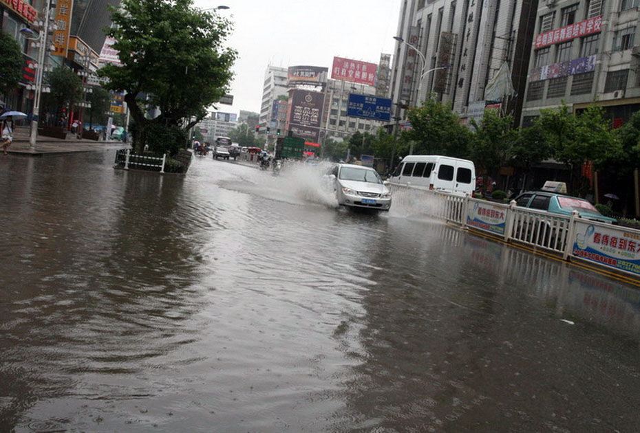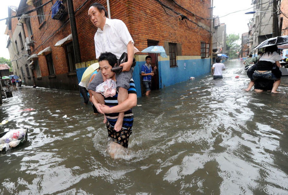 6月19日,福州一市民在市區(qū)被淹的道路艱難騎行。連日暴雨侵襲,福建各地水災(zāi)不斷,已導(dǎo)致165萬人受災(zāi)。中新社發(fā) 王東明 攝