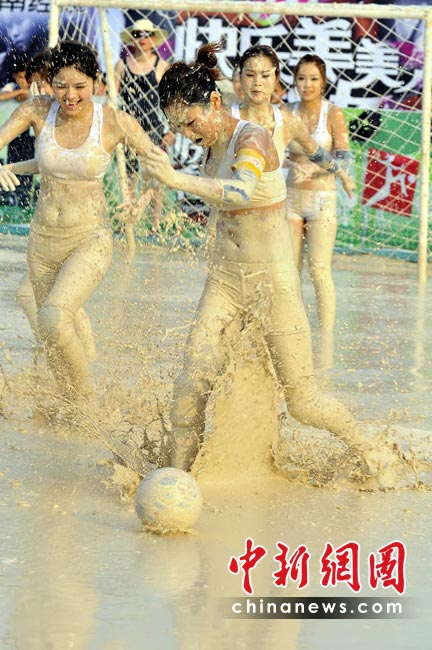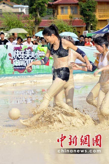 南非世界杯戰(zhàn)火越燃越烈,各地的世界杯熱潮也席卷而來(lái)。近日,一檔比基尼美女足球賽在長(zhǎng)沙開(kāi)鑼,和世界杯男足不同的是,美女們是在泥漿中比賽。據(jù)悉,這檔名為《快樂(lè)美美向前沖》的足球賽已在湖南經(jīng)視播出。節(jié)目中,為了順利闖關(guān),眾美女不顧形象,在泥漿中匍匐前進(jìn)和翻滾,引得觀眾爆笑如雷。圖為首場(chǎng)比賽中,湖南隊(duì)美女與湖北隊(duì)美女在連闖四關(guān)后,進(jìn)入泥漿場(chǎng)內(nèi)進(jìn)行終極球賽PK。湖南經(jīng)視供圖