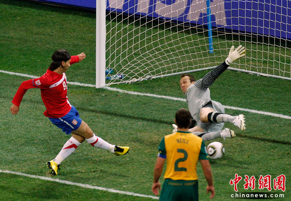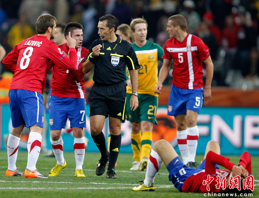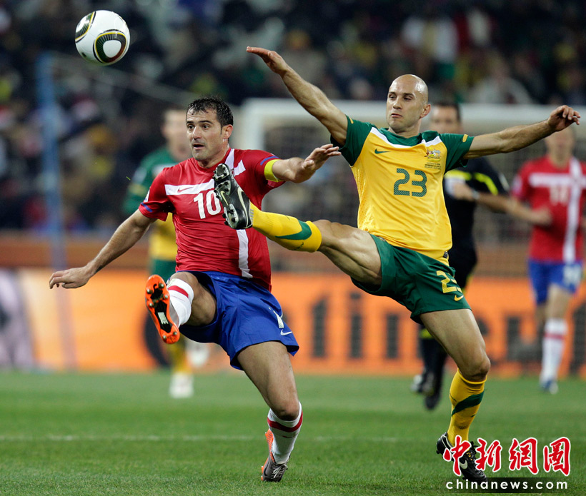 南非世界杯D組最后一輪的較量。塞爾維亞在內(nèi)斯普雷特的姆伯貝拉體育場迎戰(zhàn)澳大利亞隊。雖然澳大利亞2-1擊敗塞爾維亞隊,但仍然因為凈勝球劣勢不敵加納,無緣小組出線。