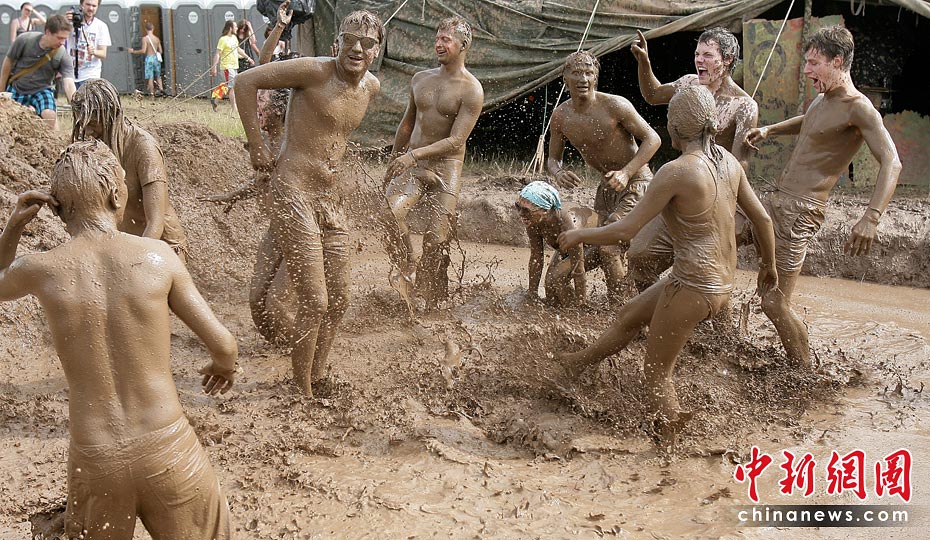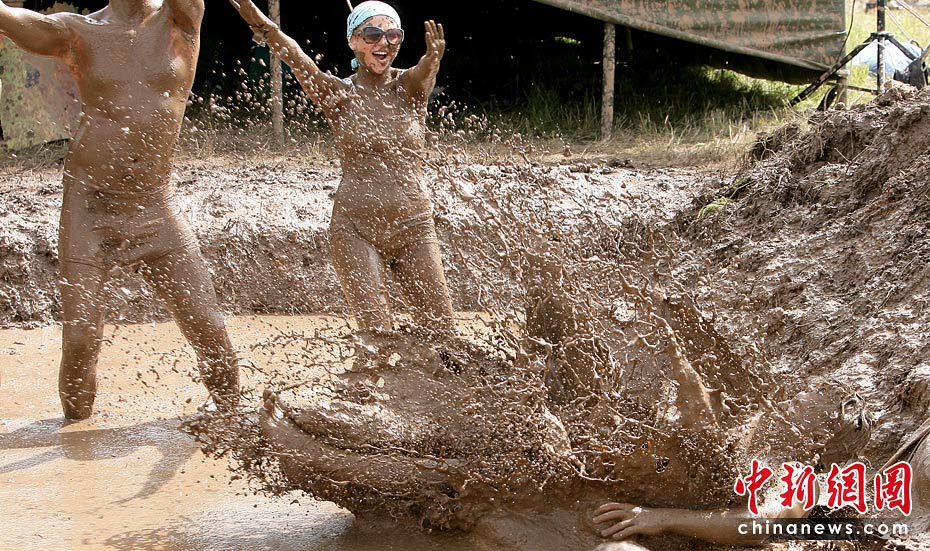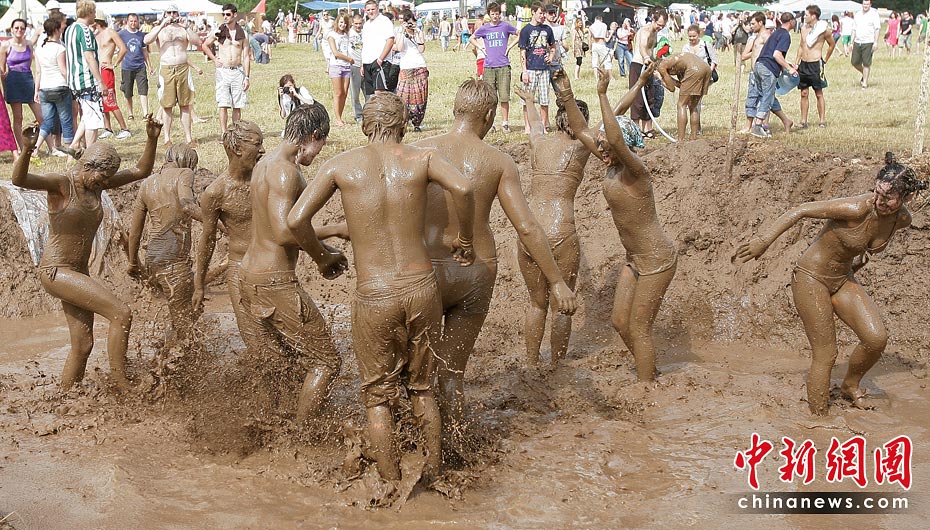 6月26日,在距離立陶宛維爾紐斯約90公里的一座村莊,參加第四屆國際音樂節(jié)的人們在泥漿中盡情歡樂。當天,第四屆維爾紐斯國際音樂節(jié)在該地上演,這是波羅的海沿岸國家最大的音樂藝術節(jié)日,吸引眾多民眾前來狂歡。