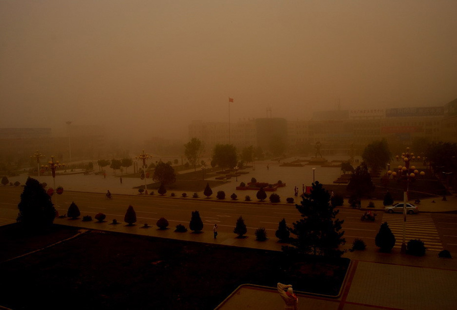 6月27日,甘肅民勤城區(qū)遭到沙塵襲擊。當日下午4時左右,甘肅省武威市民勤縣又遭沙塵暴襲擊,黃黑的沙塵迅速籠罩整個縣城,能見度大幅降低。今年4月24日甘肅民勤曾遭特大沙塵暴襲擊。 圖片來源:新華網(wǎng) 李軍 攝