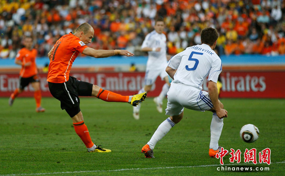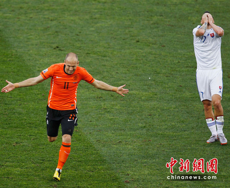28日晚,南非世界杯1/8決賽第五場(chǎng)比賽在德班球場(chǎng)拉開(kāi)戰(zhàn)幕,由E組頭名荷蘭隊(duì)迎戰(zhàn)F2第二名斯洛伐克。最終,憑借羅本和斯內(nèi)德在上下半場(chǎng)的進(jìn)球,荷蘭隊(duì)以2-1淘汰斯洛伐克,闖入八強(qiáng)。