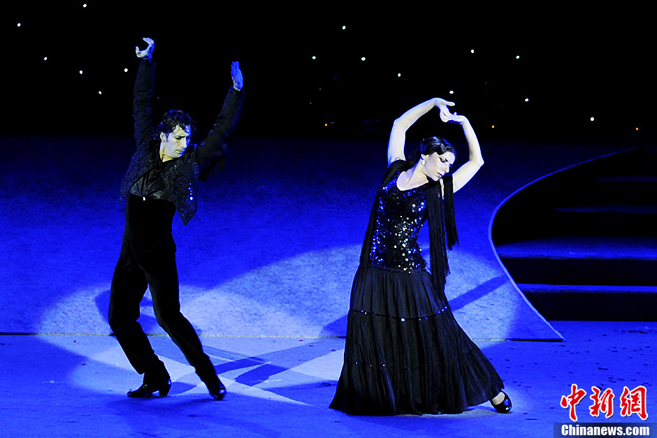 6月23日晚間,為期9天的第四屆中國成都國際非物質(zhì)文化遺產(chǎn)節(jié)在成都閉幕。以表彰保護(hù)、發(fā)揚(yáng)、傳承非物質(zhì)文化遺產(chǎn)先進(jìn)個人、集體為目的的“太陽神鳥”獎項(xiàng)也同時舉行了頒獎儀式。閉幕式上,來自泰國、西班牙、剛果(金)等國的表演者以及中國四川、內(nèi)蒙古等地的藝術(shù)家,呈現(xiàn)了一場名為“文明的盛典”的藝術(shù)大餐。圖為閉幕式上的文藝演出。安源 攝