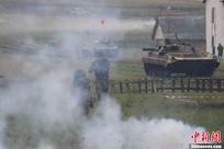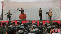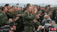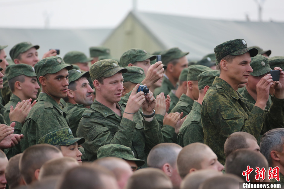 8月10日,隨同中方參演部隊(duì)赴俄羅斯參加“和平使命-2013”中俄聯(lián)演的沈陽(yáng)軍區(qū)政治部文工團(tuán)演員們,為中俄千余名參演官兵獻(xiàn)上了一場(chǎng)精彩的文藝晚會(huì)。豐富多彩的文藝節(jié)目,將位于切巴爾庫(kù)爾訓(xùn)練場(chǎng)的中俄聯(lián)演野營(yíng)村,變成了友誼的盛會(huì)、歡樂(lè)的海洋。 圖為精彩節(jié)目吸引俄國(guó)官兵。中新社發(fā) 李祥輝 攝