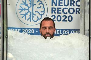 男子站在冰堆里數(shù)小時