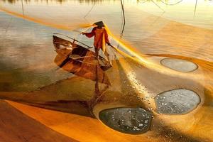 漁民撒網(wǎng)捕魚畫面綺麗