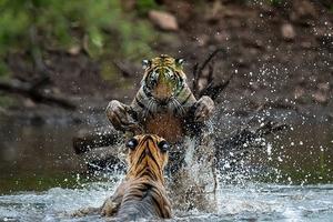 兩只老虎上演“全武行”