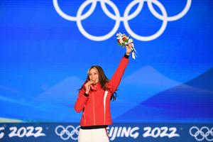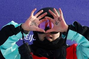 谷愛凌咬金牌慶勝利