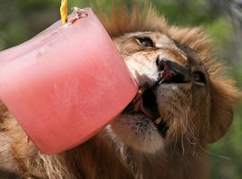 “大貓”舔冰塊解熱