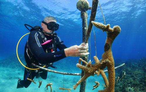 潛水員海底“造林”