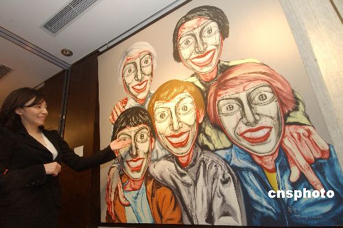 圖為曾梵志的群體肖像畫《面具-五張臉》,估價(jià)500萬港元,畫家以獨(dú)特的手法創(chuàng)造出角色及整體的舞臺(tái)效果。