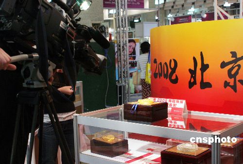 11月15日,“文筆第26屆臺北禮品展”于11月14日開幕。作為北京奧運(yùn)紀(jì)念幣在臺灣獨(dú)家代理商的臺灣大洋公司,在展會上共展出十多類近百種貴金屬投資收藏紀(jì)念幣,其中多數(shù)是北京奧運(yùn)金銀紀(jì)念幣和大陸歷年發(fā)行的“熊貓金幣”,還包括全球第一套以奧運(yùn)主場館為主題的貴金屬收藏品北京奧運(yùn)“金銀鳥巢”,自上月下旬首發(fā)以來首度在臺灣亮相。中新社發(fā) 黃少華 攝