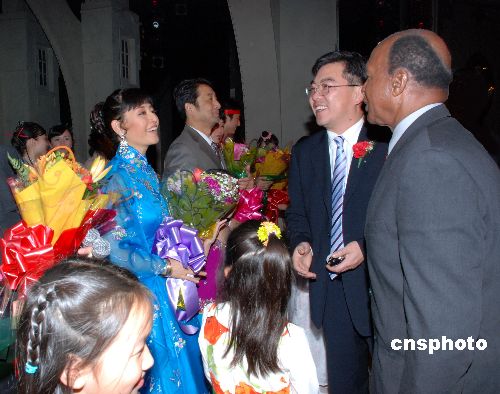 當(dāng)?shù)貢r間十一月十四日晚,中國南京藝術(shù)團(tuán)在美國芝加哥西北郊的珠瑞璉大劇院舉辦“和平頌”大型歌舞晚會,中國駐芝總領(lǐng)事黃屏、伊利諾州州務(wù)卿懷特、芝加哥市長代表李雙振等和近千名觀眾一起觀看了這場藝術(shù)精湛、反映蓬勃時代氣息的演出。特邀嘉賓、著名國家一級演員殷秀梅、男高音歌唱家呂繼宏和前線歌舞團(tuán)的四十多位演員們的演出,受到當(dāng)?shù)貎S胞的熱烈稱贊和歡迎。中新社發(fā) 張大衛(wèi) 攝