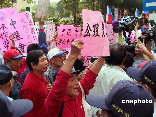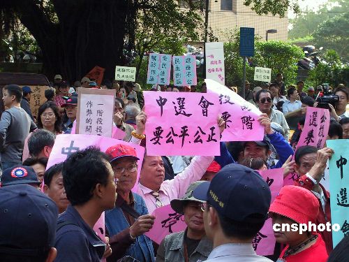 臺灣“中選會”委員會議十一月十六日晚表決確定,明年“立委”選舉合并兩項“公投”舉行,將采“分桌領(lǐng)票、一階段投、圈票方式”進行,投錯票匭選票屬有效票。圖為當(dāng)天下午臺灣民眾到“中選會”所在辦公大樓下表達訴求,希望選舉能公平公正進行。據(jù)了解,在“中選會”的一項意見調(diào)查中,臺灣二十五縣市選委會當(dāng)中的多數(shù)支持“二階段領(lǐng)、投票”模式。中新社發(fā) 劉舒凌 攝