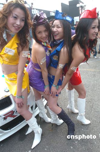 十一月十八日,幾位美女在第五十四屆澳門格蘭披治大賽車上亮相。性感的服飾。苗條的身材,動(dòng)人的眼神,爭(zhēng)艷斗麗,各領(lǐng)風(fēng)騷。中新社發(fā) 史利 攝