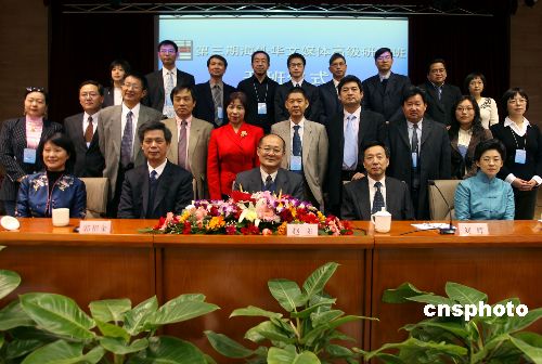 十一月二十六日,“第三期海外華文媒體高級研修班”在北京正式開班。本期研修班共邀請來自15個國家22家海外華文媒體的負(fù)責(zé)人參加。圖為國務(wù)院僑辦副主任趙陽(前中)、中國新聞社社長郭招金(前左二)等與研修班全體成員合影留念。中新社發(fā) 張勤 攝