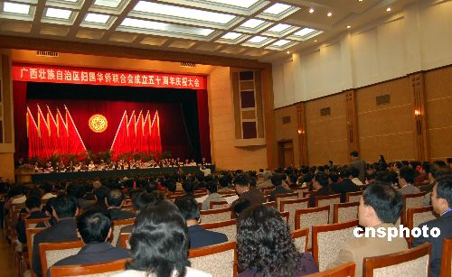 十一月二十八日,廣西壯族自治區(qū)歸國華僑聯(lián)合會成立五十周年慶祝大會在南寧舉行。東盟各國、美國和港澳等近二十個(gè)國家和地區(qū)的華人華僑代表和廣西各界人士共四百人出席大會,中國僑聯(lián)副主席李祖沛在會上講話,中共廣西區(qū)委員會書記劉奇葆發(fā)信祝賀。中新社發(fā) 劉萬強(qiáng) 攝
