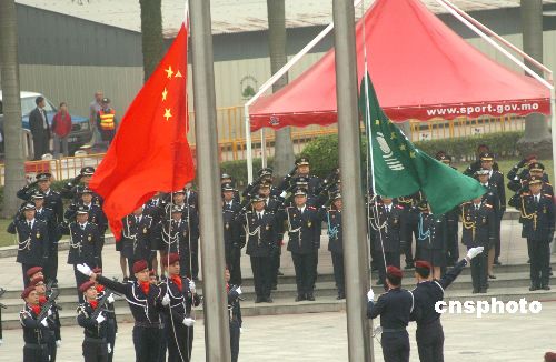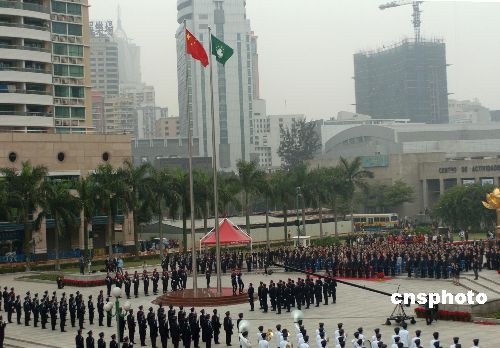 十二月二十日清晨,澳門蓮花廣場(chǎng)舉行隆重的升旗儀式,慶祝澳門特別行政區(qū)成立八周年。澳門特首何厚鏵、中央人民政府駐澳門聯(lián)絡(luò)辦公室主任白志健及各界人士出席升旗儀式。中新社發(fā) 史利 攝