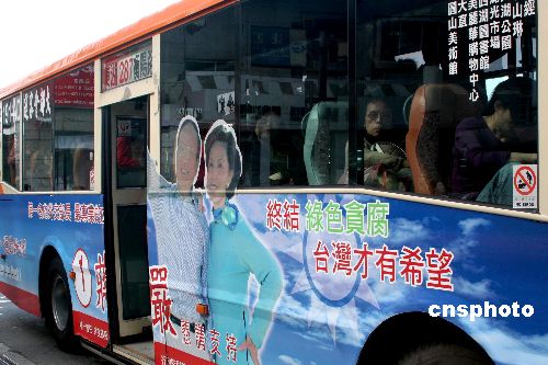 圖為臺北市一輛公交車上刊登的“立委”候選人廣告。