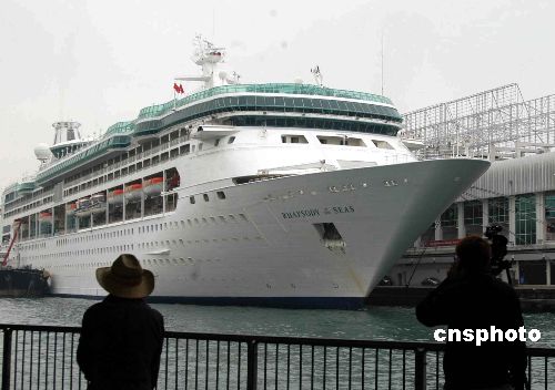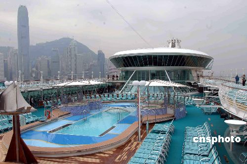 一月十五日,排水量七萬八千噸、近千間客房、可載客二千四百多人的亞洲最大郵輪“海洋迎風號”首次在香港亮相。中新社發(fā) 譚達明 攝