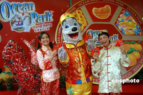 一月十七日,香港海洋公園吉祥物威威獅令以新春唐衫裝扮大派新年利是,宣傳賀歲活動。當(dāng)日,該公園宣布由二月二日至十七日農(nóng)歷期間舉辦“大團(tuán)拜”,上演“冰上百老匯”、“舞龍大匯演”等迎鼠接福活動。中新社發(fā) 蔡蔓莉 攝