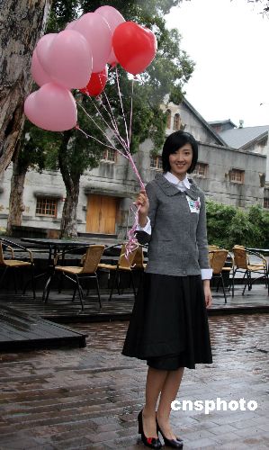 一月二十六日,臺灣年輕藝人桂綸鎂在臺北街頭拍攝廣告。微風(fēng)細(xì)雨、老樹桌椅、美女氣球,別具風(fēng)情。中新社發(fā) 孫自法 攝