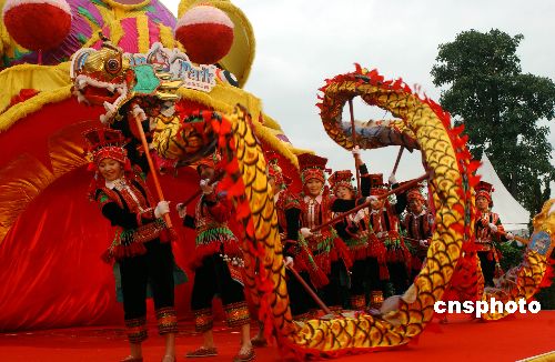 一月三十一日,穿上傳統(tǒng)民族服式、來自云南的女子舞龍隊在香港海洋公園演繹金龍獻瑞,向游客及市民拜年。當日,香港海洋公園公布在農(nóng)歷新年期間,將推出冰上百老匯、金銀滿冰宮、女子舞龍大匯演、醒獅賀歲等八十八個新春熱點。中新社發(fā) 蔡蔓莉 攝