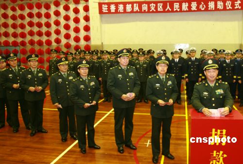 圖:解放軍駐香港部隊為內(nèi)地災區(qū)捐款捐物