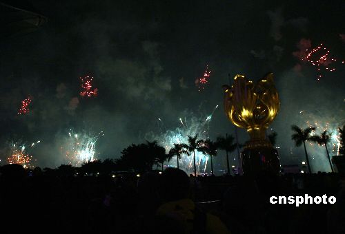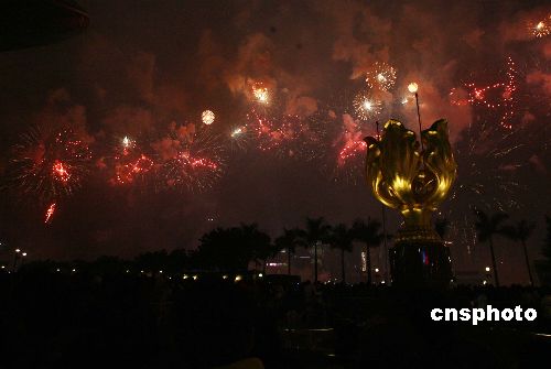 二月八日晚,香港舉行煙花匯演慶新春,警方預(yù)計(jì)四十多萬人在維多利亞港兩岸觀看。據(jù)悉,此次鼠年賀歲煙花耗資七百萬元精心打造,共發(fā)放十幕逾四萬發(fā)煙火,總長(zhǎng)度達(dá)一公里。圖為寓意國(guó)家富強(qiáng),人民生活富足的“8”圖案。中新社發(fā) 武仲林 攝