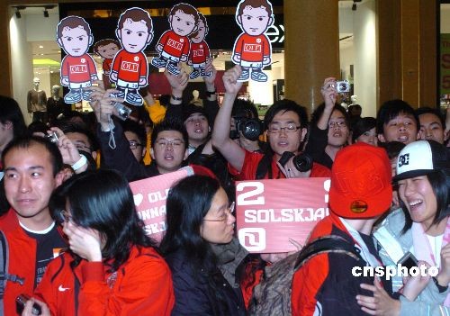 二月二十日,眾多澳門球迷在威尼斯人度假村酒店?duì)庂曼聯(lián)球星的風(fēng)采。當(dāng)日,曼聯(lián)球星索爾斯克亞專程來澳門參加『曼聯(lián)旗艦店』的開業(yè)儀式!郝(lián)旗艦店』專門銷售足球服飾及配件、品牌足球及各類紀(jì)念品,讓顧客感受『曼聯(lián)體驗(yàn)之旅』。中新社發(fā) 史利 攝