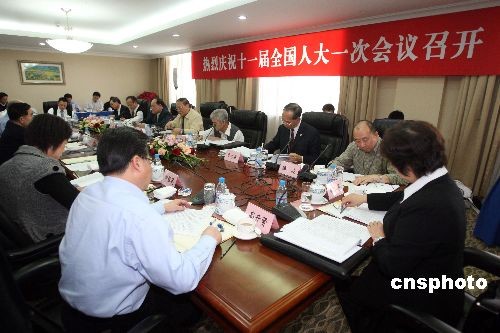 3月5日,出席十一屆全國人大一次會議的澳門代表團(tuán)舉行全體會議,審議政府工作報告。中新社發(fā) 張宇 攝