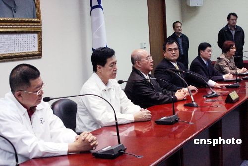 3月13日,中國(guó)國(guó)民黨主席吳伯雄及中央政策會(huì)執(zhí)行長(zhǎng)(“立院”黨團(tuán)大黨鞭)林益世,與前一晚到謝蘇總部所在大樓勘察卻爆發(fā)沖突事件的費(fèi)鴻泰、陳杰、羅淑蕾、羅明才四位黨籍“立委”,在臺(tái)北的中央黨部舉行記者會(huì),說明事件經(jīng)過,并數(shù)度向社會(huì)道歉,力圖避免馬蕭選情受影響。吳伯雄說,四名“立委”是“在不適當(dāng)?shù)臅r(shí)候,到不適當(dāng)?shù)牡胤饺ァ,造成沖突引起社會(huì)不安。他做為國(guó)民黨主席感到難過、遺憾與歉疚。中新社發(fā) 黃少華 攝