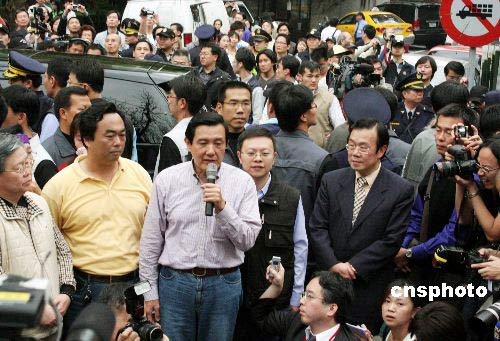 馬英九在臺北一個投開票所投票后,離去時向民眾揮手致意。