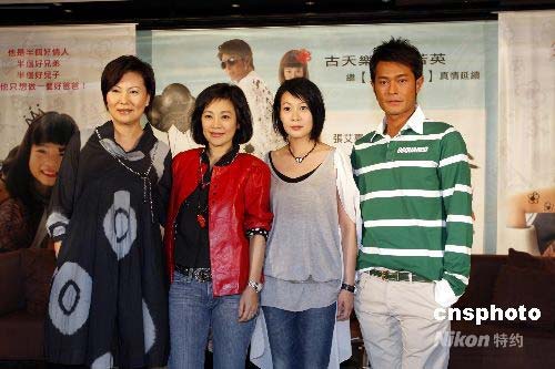4月23日,張艾嘉(左二)帶著奶茶劉若英(右二)、古天樂,以及片中客串的港星陶敏明在臺北為愛情結(jié)晶喜劇《一個好爸爸》造勢。本片由成龍親自監(jiān)制,是張艾嘉繼《20.30.40》后籌備三年的執(zhí)導(dǎo)力作。她在此片突破常規(guī)染指黑幫的花花世界,用豐富和幽默真摯情感打動觀眾,成為導(dǎo)演生涯中最有創(chuàng)作力一次。男女主角古天樂、劉若英飾演一對經(jīng)歷廿年愛情試煉的夫妻,激情有默契,雋永而清新。《一個好爸爸》將于4月25日在臺灣公映。中新社發(fā) 杜洋 攝