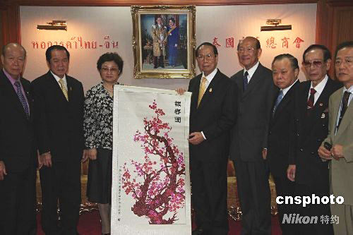 圖為李海峰代表國僑辦向泰國中華總商會贈送紀(jì)念品。